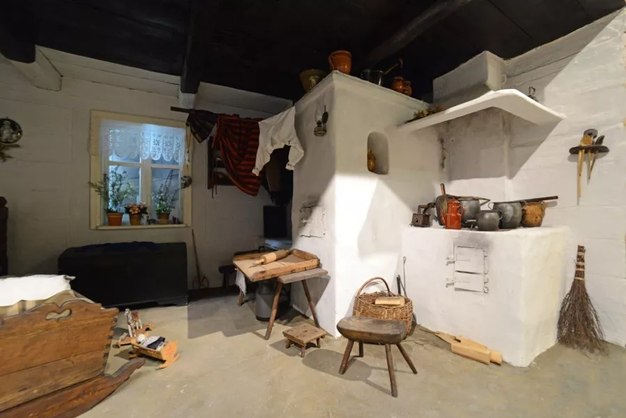 "Wizerunkiem" dzieciństwa jest wnętrze izby, a więc najważniejszej części domu rodzinnego, od której dziecko zaczynało poznawanie świata i gdzie czuło się najbezpieczniej. Tu dzieci naśladujące dorosłych, wdrażane do najrozmaitszych zajęć, uczyły się wytrwałości, poczucia obowiązku i szacunku dla pracy. W izbie-kuchni koncentrowało się życie całej rodziny, a w tradycyjnym wnętrzu obowiązywał pewien ustalony porządek w rozmieszczaniu mebli, sprzętów, przedmiotów kultu religijnego i elementów zdobniczych.