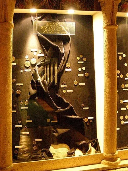 W okresie średniowiecza w niewielkiej ilości dociera na ziemie Polski moneta bizantyńska (fot. 4 ). IX i X stulecie to okres masowego napływu srebrnych monet arabskich - dirhemów. W drugiej połowie X w. zwiększa się napływ monet bitych w Europie zachodniej. Są to przede wszystkim srebrne denary niemieckie, angielskie, duńskie, czeskie i węgierskie. Jako pieniądza używano również kawałków monet, a także ozdób i nieregularnych bryłek srebra.